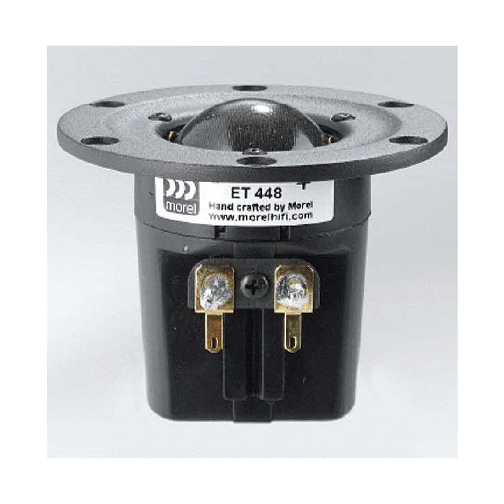 Morel ET 448 Tweeter is a 72mm faceplate diameter soft dome tweeter with a 28mm Hexatech aluminum voice coil and replaceable Acuflex dome/voice coil assembly. It features Morels’ IDR™ Improved Dispersion Recess aluminum face plate, aluminum rear chamber, ferrofluid cooling and high power handling. This is an upgraded replacement for the MDT-44. Priced individually, supplied in pairs.
