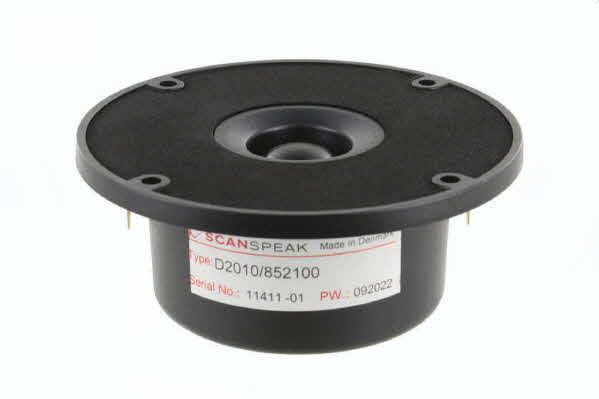 Scanspeak D2010/852100. Latest version of this classic tweeter. 89dB sensitivity, Neo magnet, lo-resonance damped dual chambers, foam fronts. vented pole. No Ferrofluid. Modern CNC manufacturing and new tooling gives extended response up to 22Khz and better consistency.