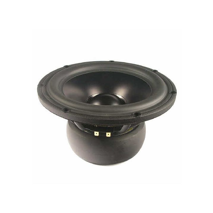 8 ohm 8" unit. Die-Cast Aluminum Chassis vented below spider. Low Loss linear suspension, black anodised Aluminium cone, large Rubber Boot ferrite magnet system and a high output.
